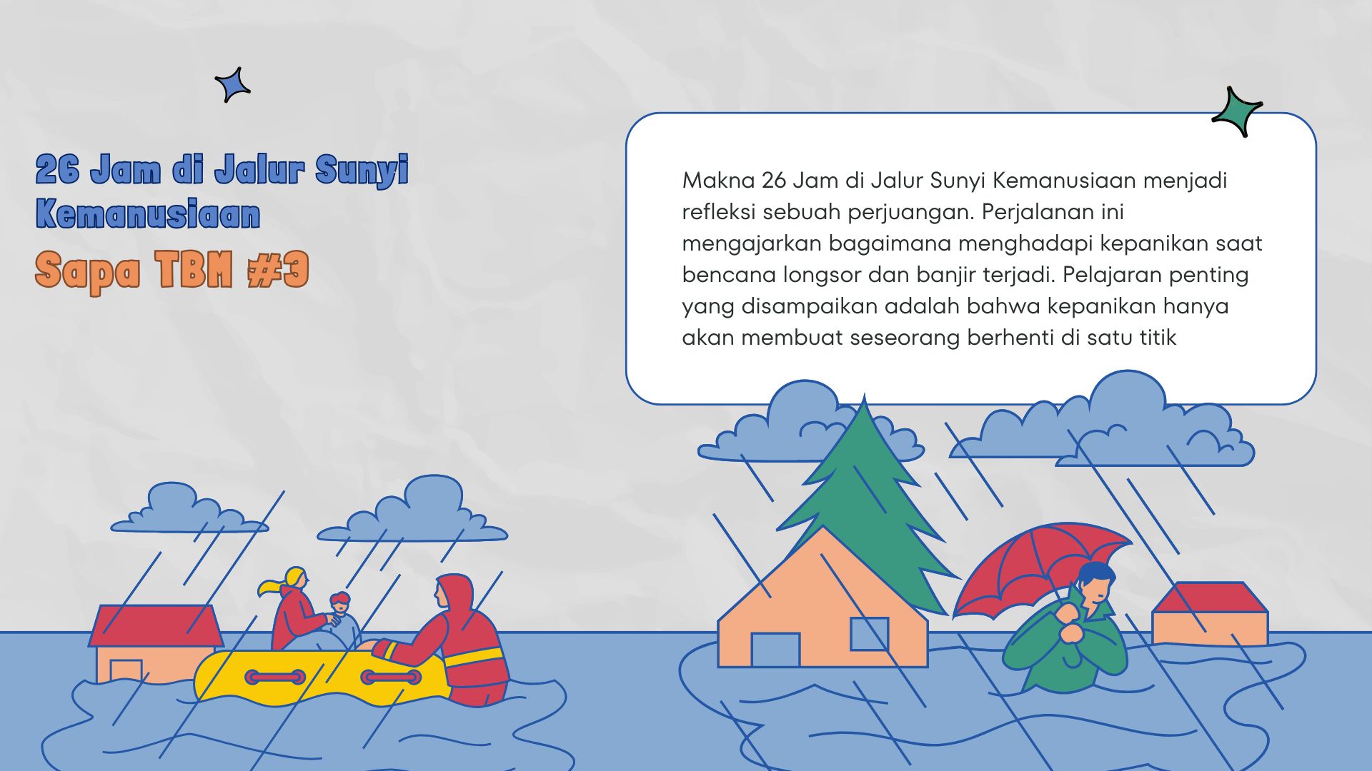Makna 26 Jam di Jalur Sunyi Kemanusiaan menjadi refleksi sebuah perjuangan. Perjalanan ini mengajarkan bagaimana menghadapi kepanikan saat bencana longsor dan banjir terjadi. Pelajaran penting yang disampaikan adalah bahwa kepanikan hanya akan membuat seseorang berhenti di satu titik. Oleh karena itu, tetap tenang dan berpikir positif menjadi kunci. Sebab, bencana merupakan ujian yang datang dari Allah.