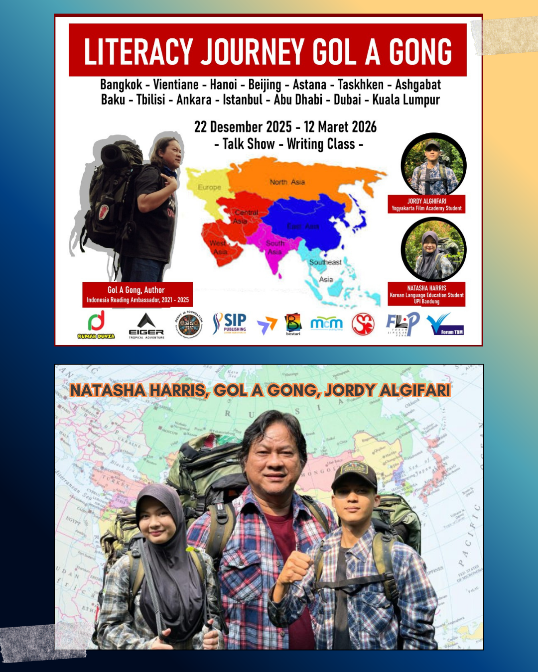 Di dalam berbagai grup WhatsApp, Facebook, dan blog, sastrawan Gol A Gong mengumumkan bahwa ia akan melakukan perjalanan literasi ke berbagai negara Asia dan Eropa. Ia membawa serta dua anaknya menghikmati perjalanan yang membutuhkan waktu kurang lebih tiga bulan lamanya, dengan tajuk Literacy Journey Gol A Gong.