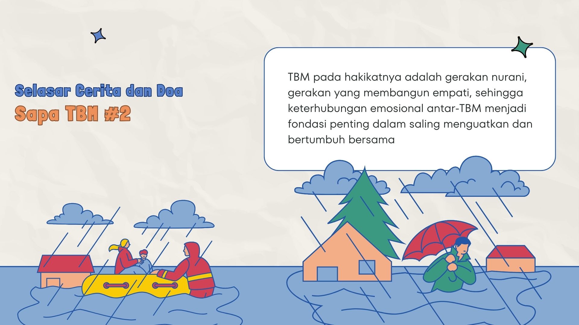 Kegiatan ini menjadi ruang bincang dan refleksi yang menghadirkan Sekretaris Jenderal Forum TBM, Heni Wardatur Rohmah, bersama narasumber Muhammad Supawi, founder Rumah Intuisi. Seluruh uraian dan refleksi yang disampaikan dalam tulisan ini merupakan hasil dari bincang-bincang SAPA TBM tersebut, yang membuka ruang perjumpaan dengan cerita-cerita yang tumbuh, didengar dengan penuh perhatian, dan menjelma menjadi doa-doa yang terpanjatkan dalam keheningan.