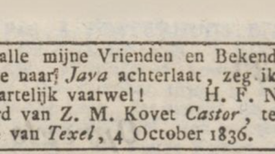 Foto 02. Ukena berpamitan hendak pergi ke Pulau Jawa. Sumber: Opregte Haarlemsche Courant, 11-10-1836.
