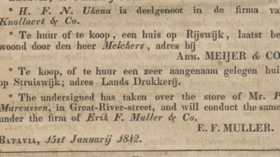 Foto 03. Ukena bergabung dengan Knollaert sebagai mitra kerja. Sumber: Javasche courant, 26-01-1842.