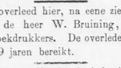 Pada 12 Juni 1877, W. Bruining meninggal dunia, karena sakit selama beberapa hari. Dia dianggap sebagai penerbit tertua yang ada di Batavia dan meninggal dunia pada usia 69 tahun.